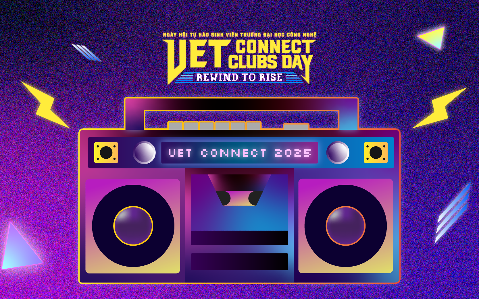 Chương trình Tự hào sinh viên Trường Đại học Công nghệ là nơi những thanh âm tuổi trẻ vang lên một lần nữa, nơi các thế hệ sinh viên cùng kết nối, kiến tạo và đổi mới. Tháng 12 này, UET CONNECT - UET CLUBS DAY - FINAL UET MAKERTHON 2025 trở lại, mở ra hành trình "Rewind to Rise": tạm dừng và cùng nhìn lại những thước phim, những bản nhạc, những tiếng cười và thành tựu của tuổi trẻ, bạn sẽ lấy đà và bật lên mạnh mẽ hơn bao giờ hết.